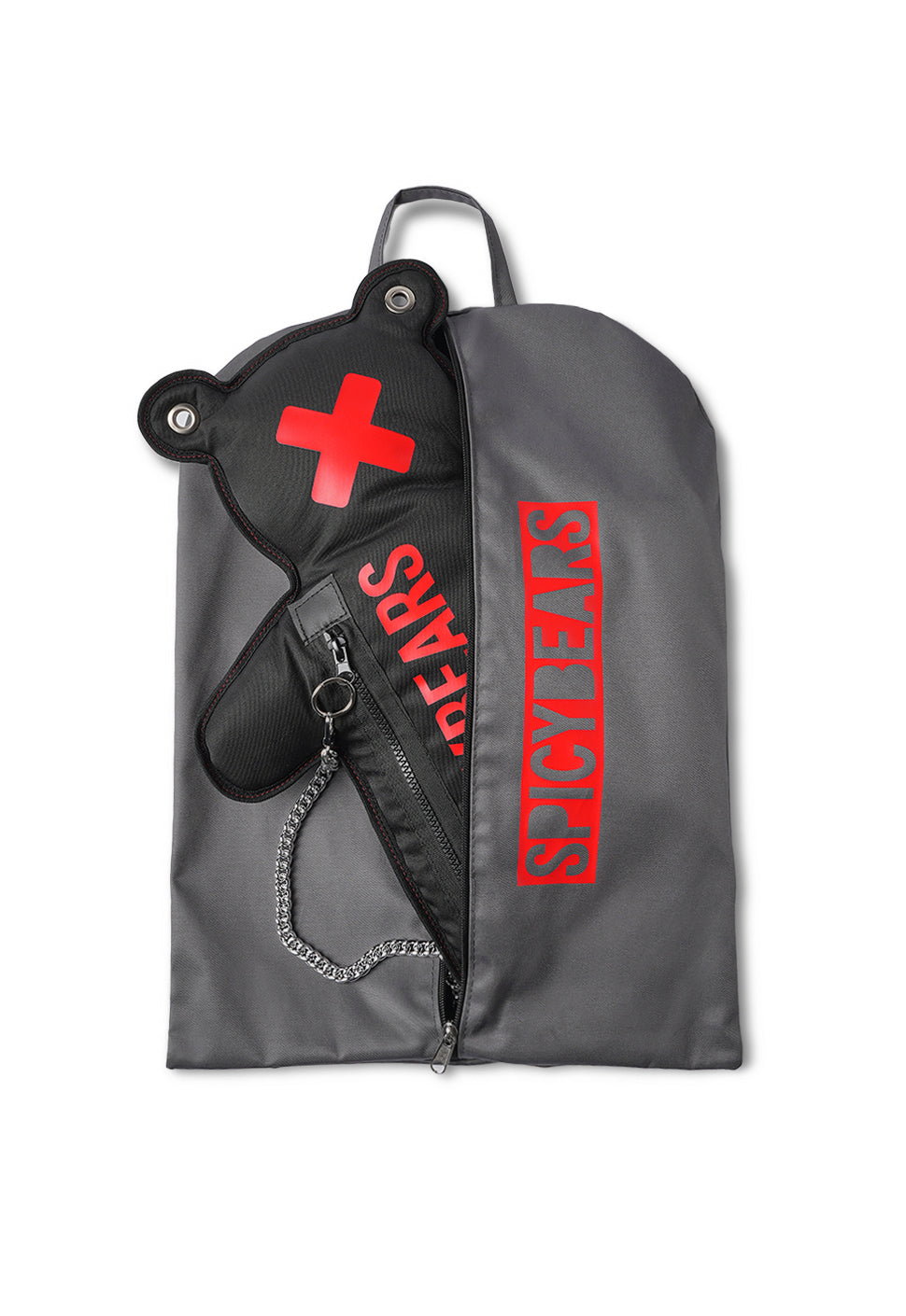 What a beautiful spicy bear this is with enough room to hide ur phone and wallet.... the chain gives this bear a kind of fetish feeling. The black and red colour i love.... why I chose this bear.